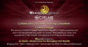 Lake Mary FL, March 12, 2026 – The Wealth Engineering Family of Companies (WE) is pleased to announce the inclusion of CyFlare as an exclusive core cybersecurity partner within its Expert Sourcing Consortium; synchronizing with our other expert sourcing firms and our elastic infrastructures – FusionPowered Wealth Advisory and OpenOption Practice Engineering Dashboards.