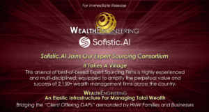 Orlando FL, March 17, 2026 – The Wealth Engineering Family of Companies (WE) is pleased to announce the inclusion of Sofistic.AI as a core component of its Expert Sourcing Consortium; synchronizing with our other expert sourcing firms and our elastic infrastructures – FusionPowered Wealth Advisory and OpenOption Practice Engineering Dashboards.